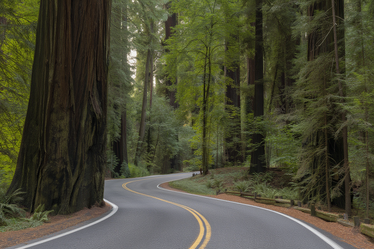 You meet the crew in Fort Bragg on the Mendocino Coast. From there the group drives about an hour north to the entrance of Usal Redwood Forest. The road into the property is gravel, narrow in places, and winding through terrain that starts to feel different almost immediately as the trees close in overhead.